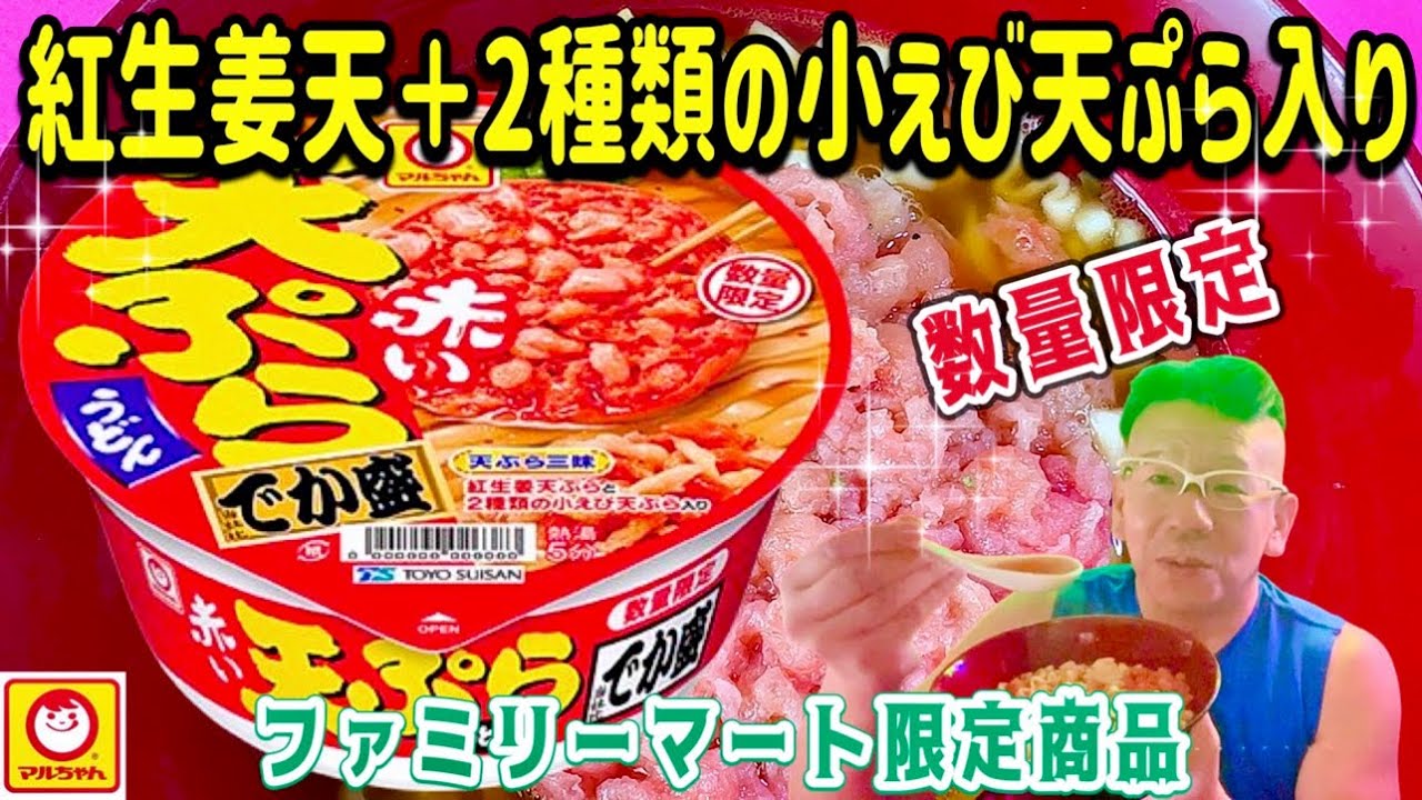 【赤い天ぷらうどん天ぷら三昧】マルちゃん 東洋水産 ファミリーマート限定商品 数量限定 赤い天ぷらうどん でか盛 紅生姜天と2種類の小えび入り!