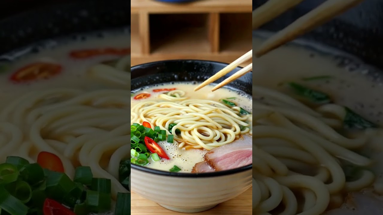 Ramen de Tonkotsu: Sopa de macarrão japonesa, com um caldo rico e encorpado. #receitas